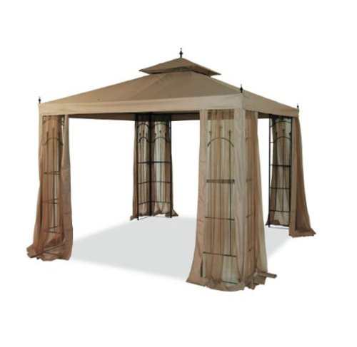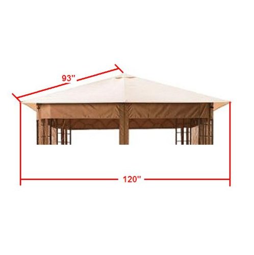 Buy Low Price From Here Now This canopy and curtain netting set fits gazebos that were sold at Target from 2005-2007 (not in 2008 or later) manufactured by SunJoy Industries, named the Sunjoy Summer Veranda. The Sunjoy model numbers of the gazebos this canopy is designed to replace are G-GZ093PST, L-GZ093PST, and TGZ093 (DPCI 242-08-3491). Garden Winds recommends that you purchase this canopy only if you have this particular gazebo. This canopy will not fit any other gazebo. Please measure carefully, do not confuse this gazebo with the Sunjoy Madaga gazebo sold at Target stores in 2008. Compare using the below measurements. The Summer Veranda gazebo has smaller measurements than the Madaga gazebo. The top tier measures 36" x 36". The bottom tier measures 128" x 128". Between the top tier and bottom tier is a functional mosquito netting that allows wind ventilation. Available in Beige. This product includes canopy and netting set only, metal gazebo structure in picture sold separately.